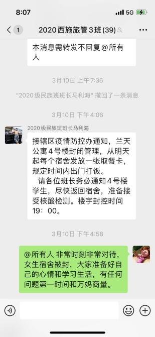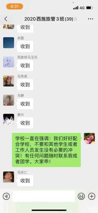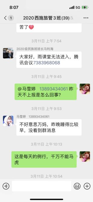 “感谢“万妈”的谆谆教导!感谢这份不离不弃,让我们感受到了疫情中的温暖,做您的学生真幸福!”这是新葡的京集团8814登录入口2020级旅游管理民族班的同学发给班主任“万妈”万抒佳老师的信息。
