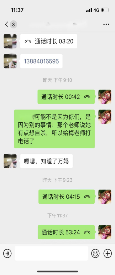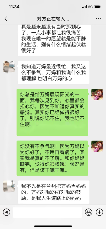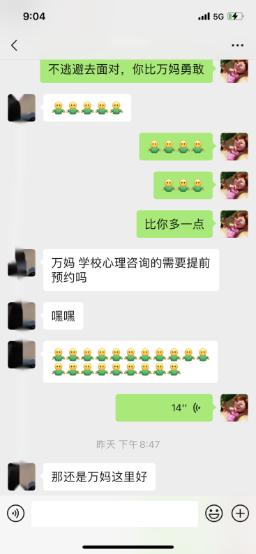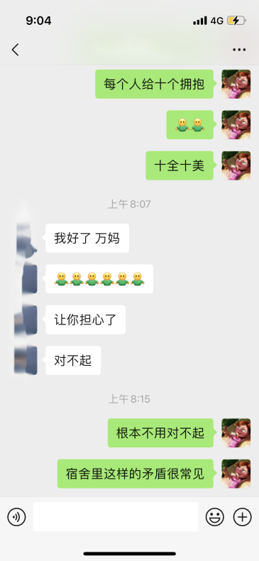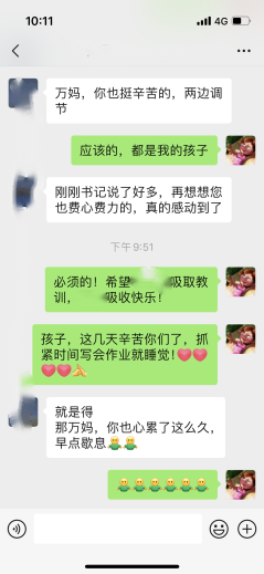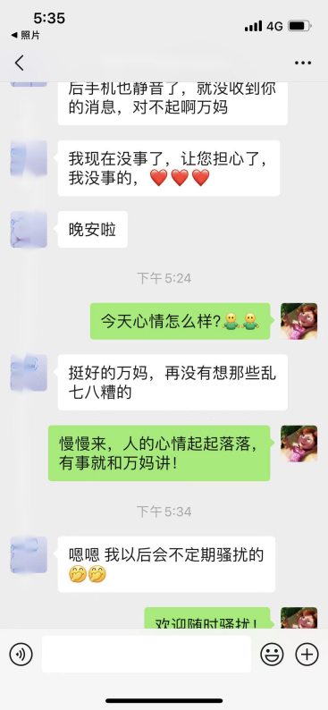 疫情防控闭环管理期间,个别宿舍里难免会出现压抑感和焦虑情绪,同学之间的矛盾在所难免的爆发了。其中更有同学产生“轻生的念头”,作为“万妈”焦急万分,但是多年的班主任经验提醒她自己“不要慌”,思索片刻,“万妈”立刻梳理出一条解决事情的逻辑线:先联系班级心理委员和学院辅导员,再联系学校驻蓝天公寓的心理咨询老师,抓紧时间从同宿舍的其他人员那里掌握客观情况,最后打电话给当事人!在整个事件的处理过程中,“万妈”始终掌握一个原则——“不要责备,不要讲道理,认真去倾听。”一定是先去倾听对方的“伤痛点”,换位思考,与对方产生共情,对她今天所遭受的经历感到同情,待对方平静下来后,再缓缓分析事件,从另外一个角度切入进行分析,事情可能并不像她想的那样糟心。谈话后 ,还要去安抚宿舍里其他的孩子,希望他们帮助“万妈”,当好“情报员”,同时也要去缓解他们心中的压力。正是每一次的不弃不离和温暖守护,让这班孩子能时刻感受到“万妈”的温暖,心里踏实了许多。