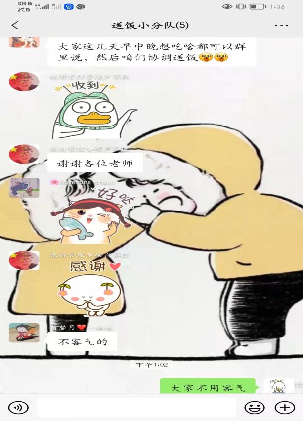 疫情期间的数据摸排工作庞杂,需要无一遗漏迅速上报,新葡的京官网辅导员苗馨月老师几乎成为了新葡的京集团8814登录入口疫情“流调员”,深夜11点她依然在摸排各类途径中高风险区学生数据,清晨7点她已经在处理“黄码”学生的隔离处置,第一时间与社区党工委联系为学生安排隔离宿舍等等,正是因为各个班级的疫情防控监督员也看到了她的辛苦与负责,凌晨在摸排任务时会暖心的回复一句“收到,喵姐,我们迅速摸排,您辛苦了”。正是这一系列“暖心”的服务保障,多位“有情有义”的老师让学生感受到“有情怀”的西北师大给与他们最有爱的安全感。